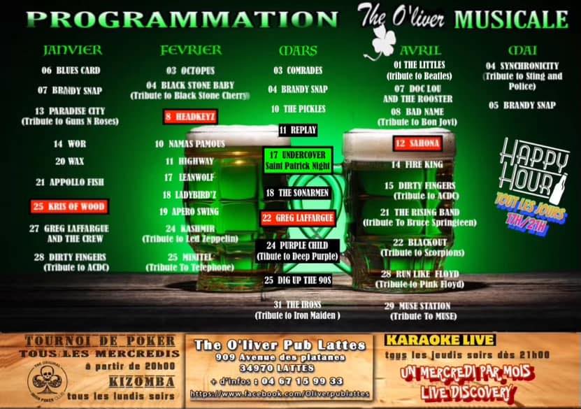 The O’liver Pub est bien plus qu’un simple lieu pour prendre un verre ou déguster une bière entre amis. Nous sommes un établissement vivant et animé qui programme en permanence une variété d’événements pour divertir nos clients.